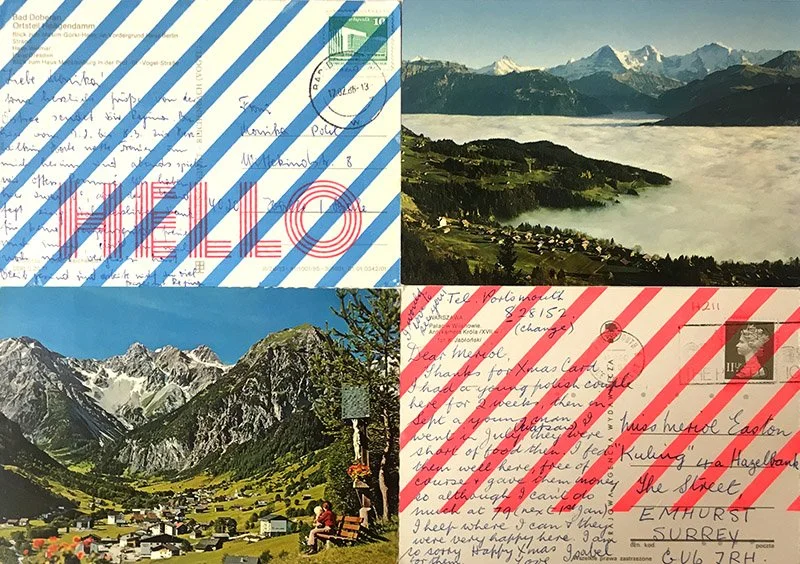 Ditto - again, repeat, reuse, recycle, remake...Hello Ditto print brings new life and love into discarded imagery. Repurposing postcards, books, maps, and more with screen printed and hand drawn elements. An exploration into the juxtaposition of type, print, colour and pattern with culture, travel, words and image. Give everything a second chance to say hello.